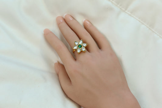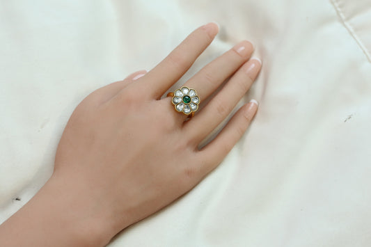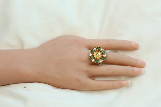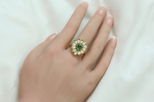 Marigold Jadau Kundan Ring- Green
