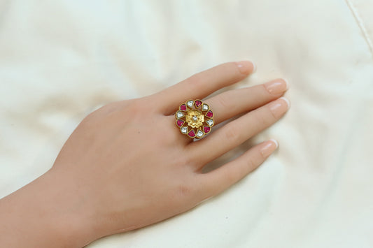 Marigold Jadau Kundan Ring- Ruby
