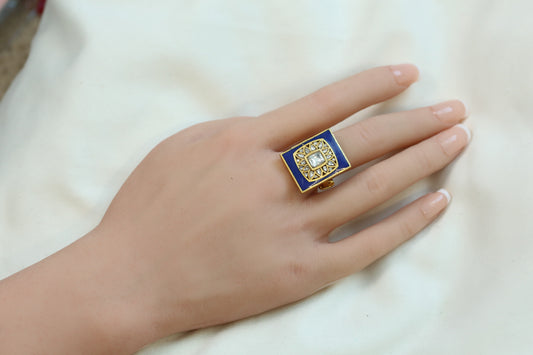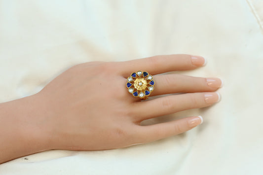 Marigold Jadau Kundan Ring- Blue