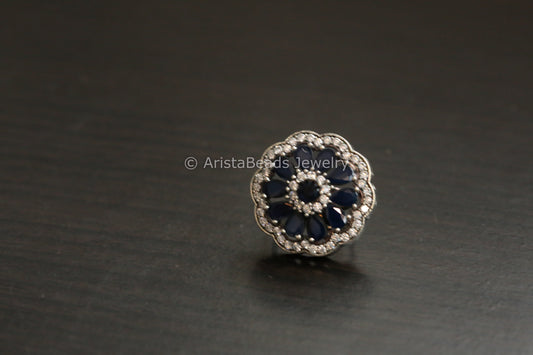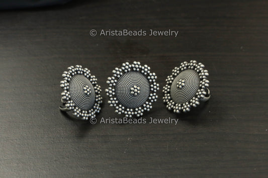 Large Silver Finish Jadau Rings (Adjustable) - Design 3