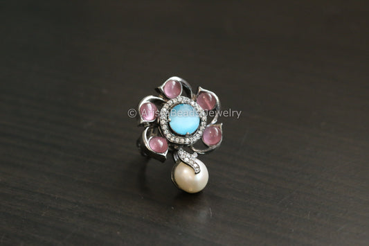 Kundan Polki CZ Ring (Adjustable) - Pink