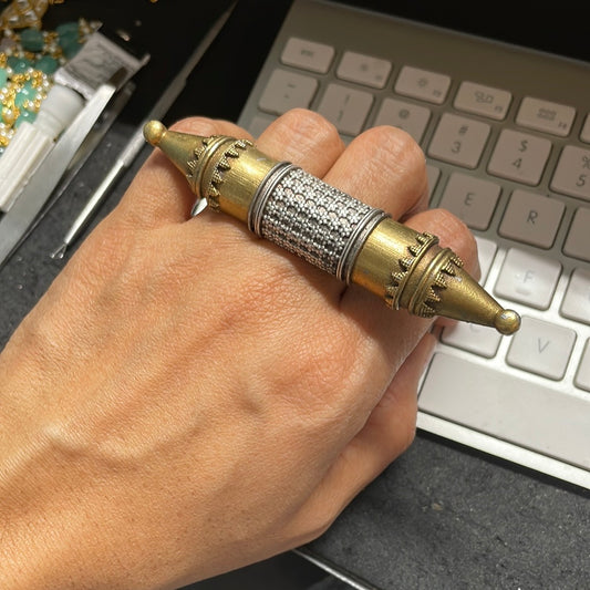 Jadau Kundan Two Finger Bar Ring (Adjustable) -Clear