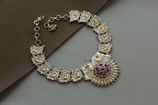 Aarya Silver Look Dual Tone Necklace - Ruby