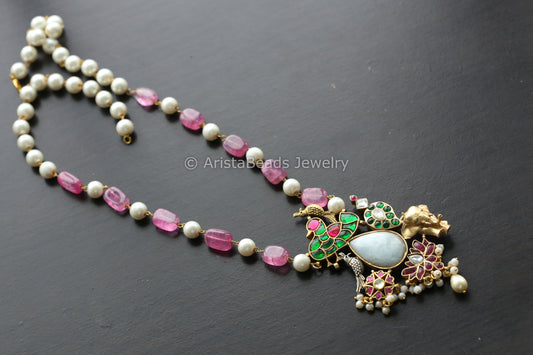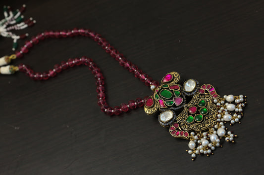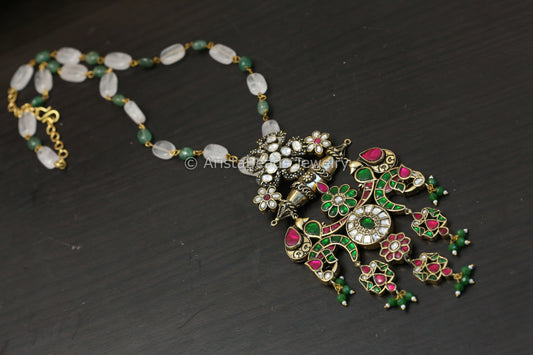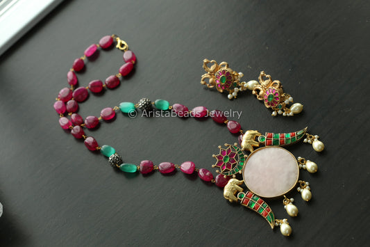 Fusion Jadau Kundan Necklace -Rose Quartz