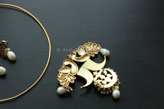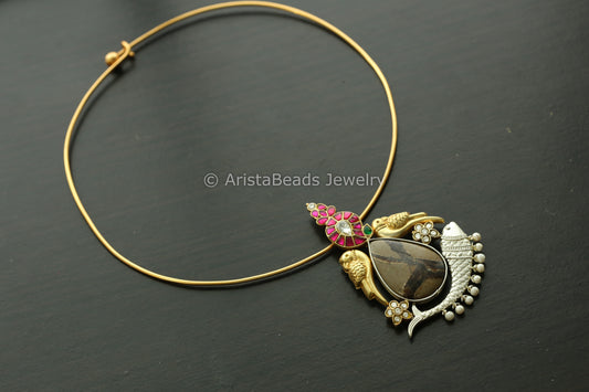 Fusion Jadau Kundan Hasli Necklace -Jasper