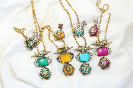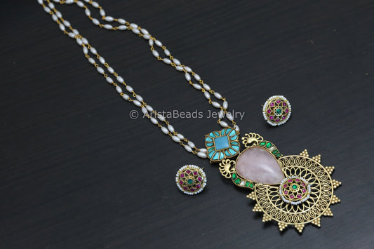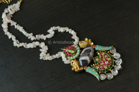 Fusion Kundan Pendant Set -Crystal Quartz Beads