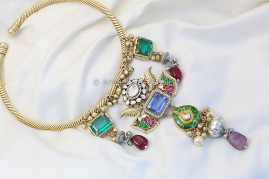 Fusion Kundan Polki & Doublet Hasli - Green Ruby(103-33)