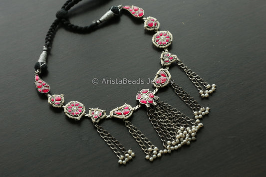 Fusion Kundan Hasli Tassel Necklace -Ruby