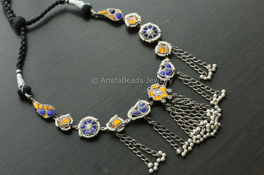 Fusion Kundan Hasli Tassel Necklace - Blue Yellow