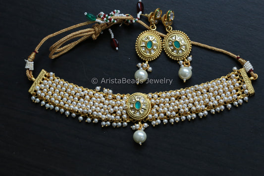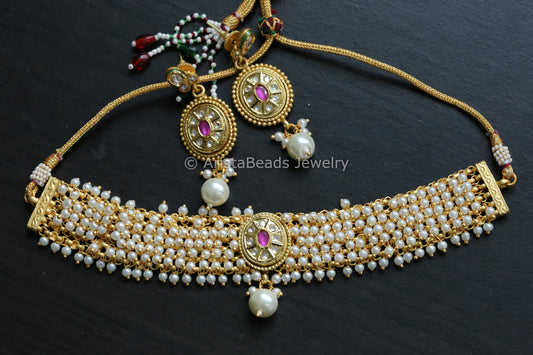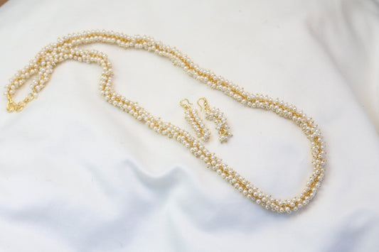 Gajra Style Ganesha Temple Necklace Set - Pearl