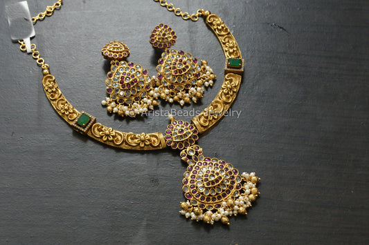 Gram Gold Kemp & CZ Polki Jhumki Necklace Set