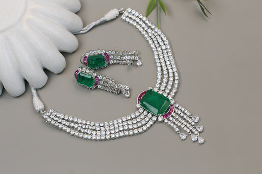 Grace Premium CZ Solitaire Diamond Look Necklace -Green