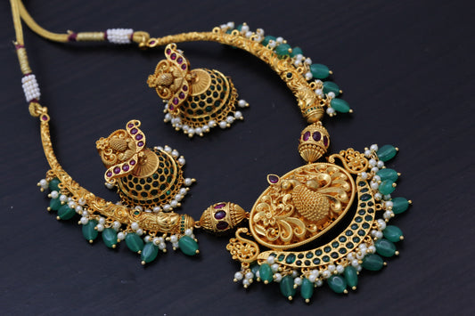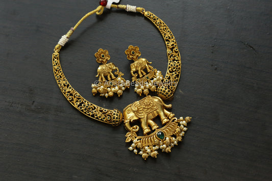 Gram Gold Nakshi Ganesha Hasli Necklace Set