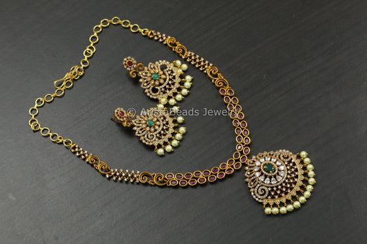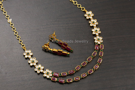 Sold outGram Gold CZ Ruby Green Necklace Set
