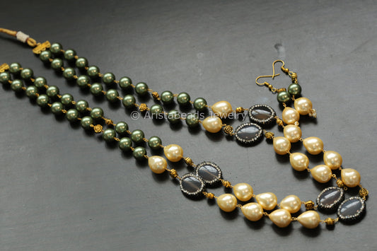 Green Pota Stone Antique Gold Pacheli Set (2.4 & 2.6)