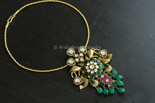 Green Ruby Jadau & Moissanites Fusion Hasli Necklace