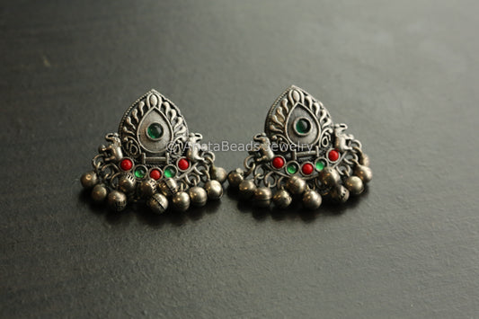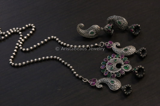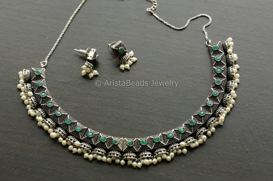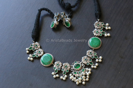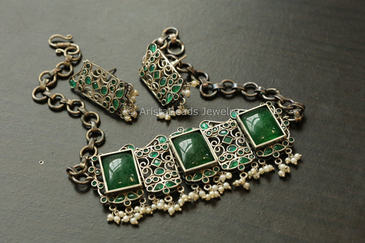 Green Quartz Jadau Hasli Necklace - Oxidized