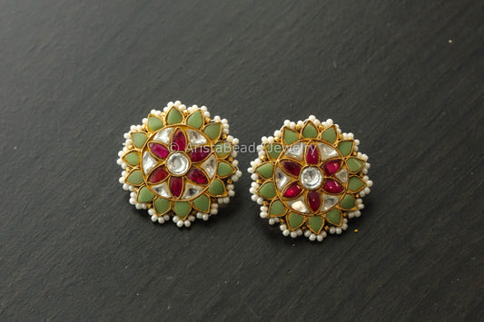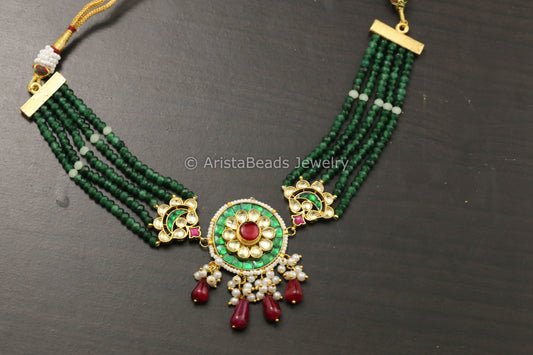 Green Pota, Real Pearls, Kundan & Jadau Work Choker Set