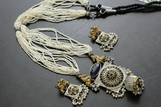 Handmade Dual Tone Jhumka Necklace Set - Blue