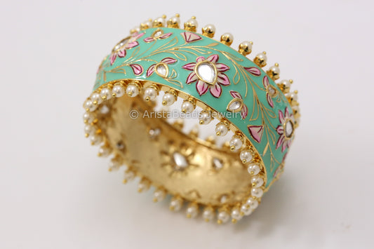Sold outHandmade Enamel Kundan Bangle- Teal