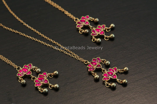 Handmade Dainty Kundan Necklace - Ruby Lotus