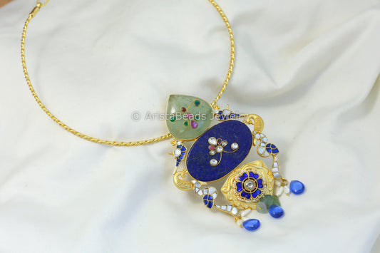 Handmade Fusion Jadau Pendant -Lapis (Removable Hasli)