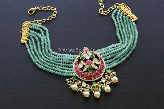 Handmade Jadau Haram Necklace- Strawberry Melon Beads
