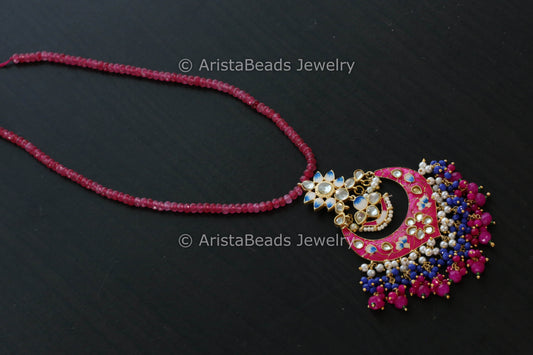 Handmade Mala Necklace With Enamel Pendant - Pink