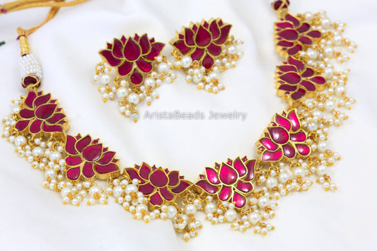 Sold outHandmade Lotus Kundan Necklace Set