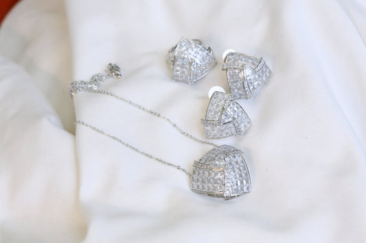 Invisible Stone Setting Necklace Set -Clear