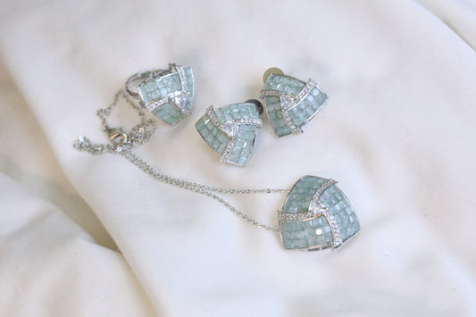 Invisible Stone Setting Necklace Set -Mint