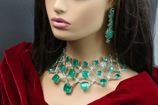 Invisible Stone Setting Necklace Set- Olive Green