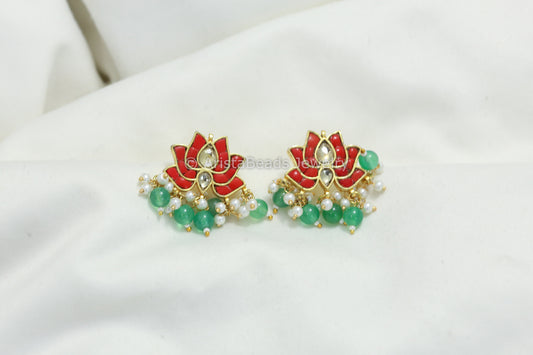 Sold outJadau Coral & Uncut Polki Chandbaali