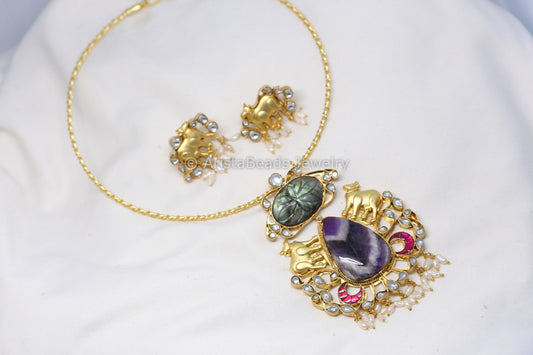 Jadau Fusion Hasli Necklace Set - Amethyst (Removable)