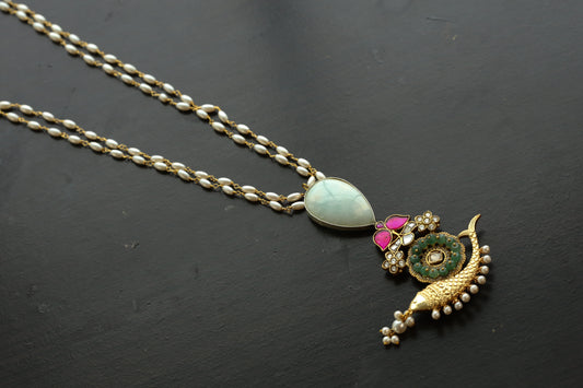 Jadau Fish Pendant Hasli Necklace ( Colors available)