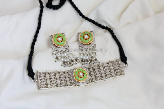Jadau Fusion Hasli Necklace Set - Carved Labradorite (Removable)