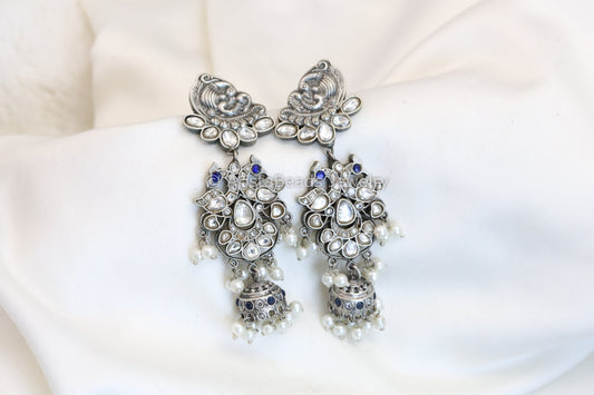 Jadau Jhumka In Silver Finish - Clear