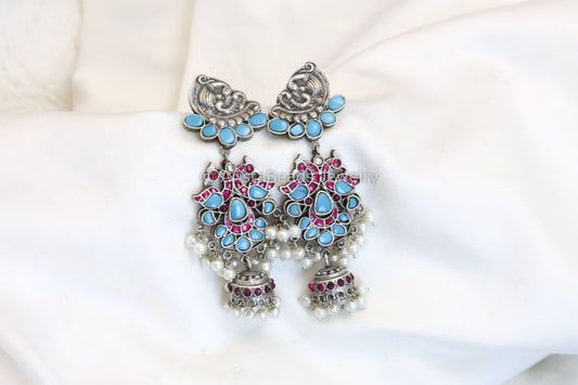 Jadau Jhumka In Silver Finish - Turquoise