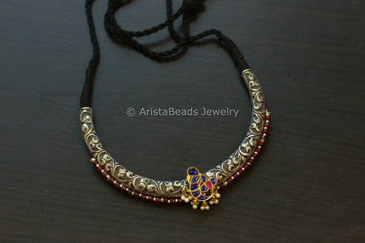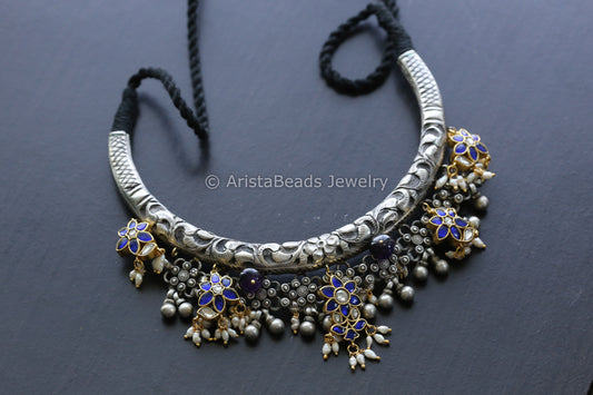 Jadau Kundan Dual Tone Hasli Necklace - Blue