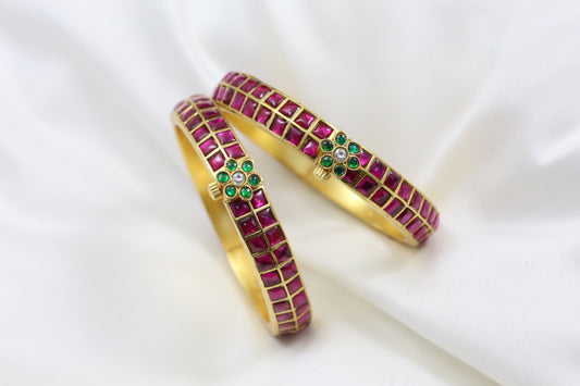 Jadau Kundan Earrings - Ruby & Ice Blue
