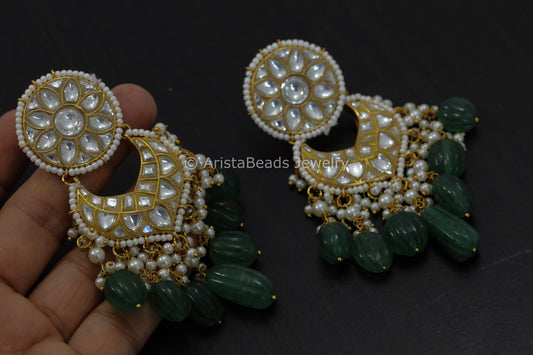 Jadau Kundan Earrings - Green Turquoise & Black Onyx