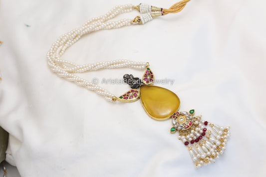 Jadau Kundan 925 Sterling Silver Designer Necklace ( Real Pearls)