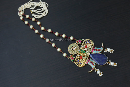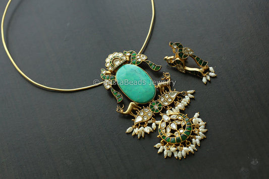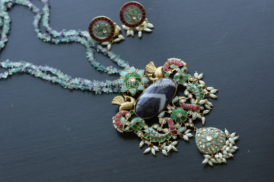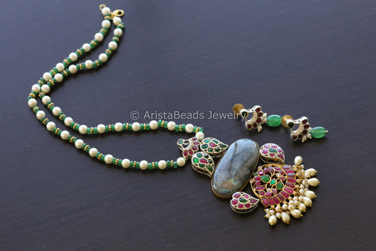 Jadau Kundan Fusion Pendant Set - Labradorite