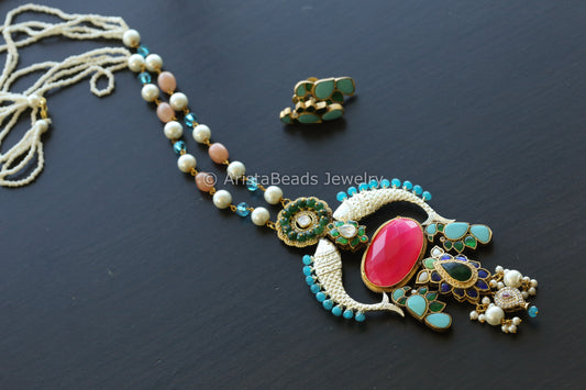 Jadau Kundan Fusion Pendant Set - Pastel Shade