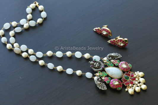 Jadau Kundan Fusion Necklace Set - Rose Quartz