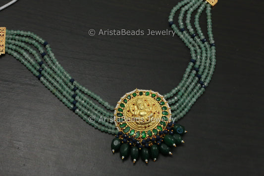 Jadau Kundan Ganesha Choker Necklace - Blue Green Drops