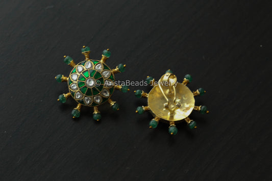 Jadau Kundan Guttapusalu Necklace Set - Blue Green