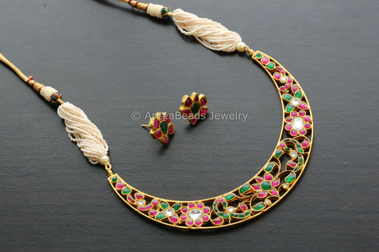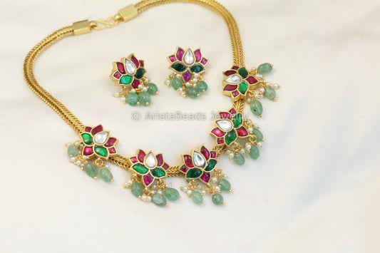 Jadau Kundan Lotus Guttapusalu Necklace Set