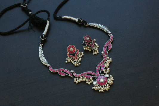 Jadau Kundan Oxidized Necklace Set - Ruby