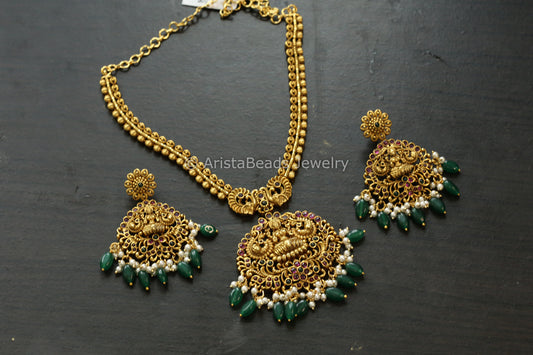Kemp Stone & CZ Temple Hasli Necklace Set